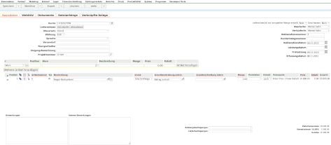 Aus den Belegen EK/VK Auftrag, EK/VK Lieferschein, EK/VK Rechnung kann unter "Workflow->Reklöamation erfassen" eine dem Workflow zugehörige Reklamation erfasst werden. Die Reklamationsmaske ähnelt im großem die der Auftragsmaske.