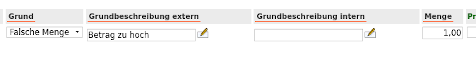 Es werden alle Positionen aus dem Beleg übernomen. Deswegen müssen hie die Positionen angepasst werden. Zusätzlich muss noch ein Reklamationsgrund angegeben werden.